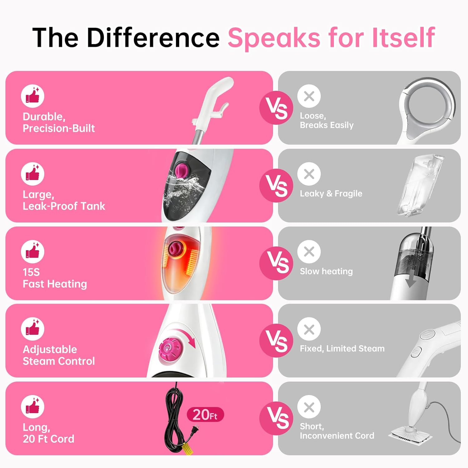 | Special Features | Detachable, Large Capacity Tank, Rapid Heat Up, Steam Control, Swivel Head |