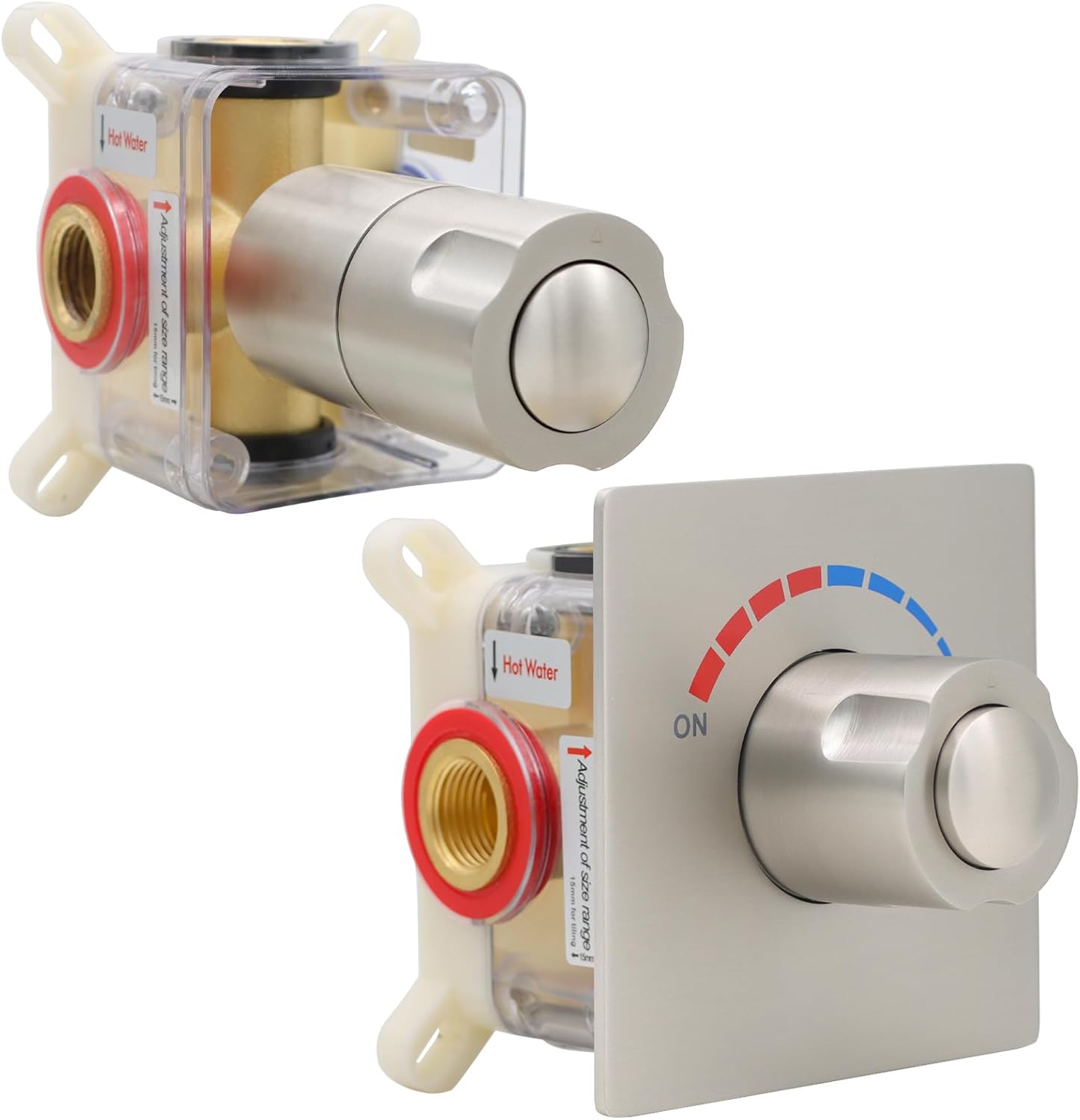 NPYSVSSS 2 Way Push Button Thermostatic Shower Diverter Mixing Valve Product Specification Material : Brass, 304 stainless steel Style: Modern Finish Package Contains: 1x1 2 Way Push Button Valve 1x1 Custom Panel