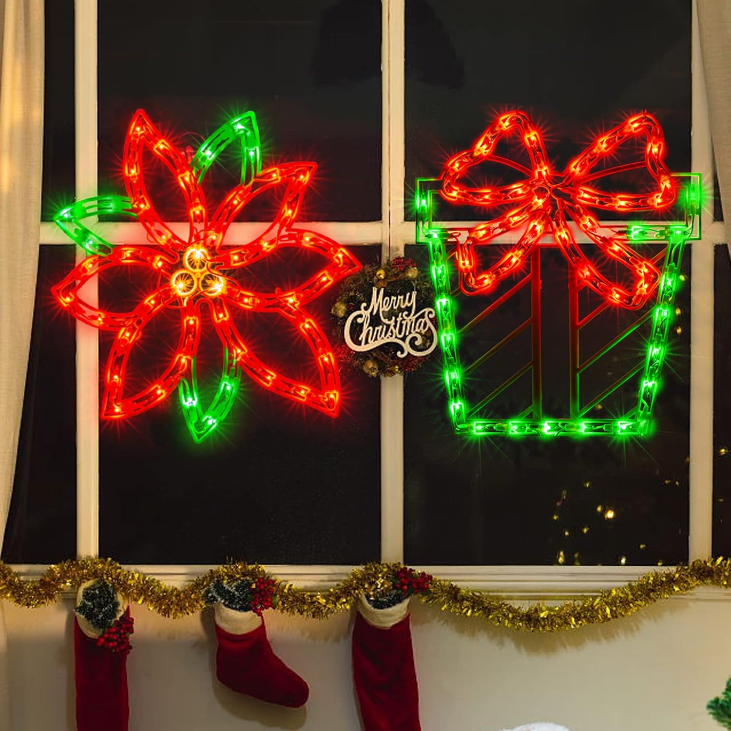 GLOWNOVA 50L16'' 2 Pack Christmas Window Silhouette Lights Decorations, Window Lighted Deer and Santa for Home Indoor Wall, Patio Lawn, Garden