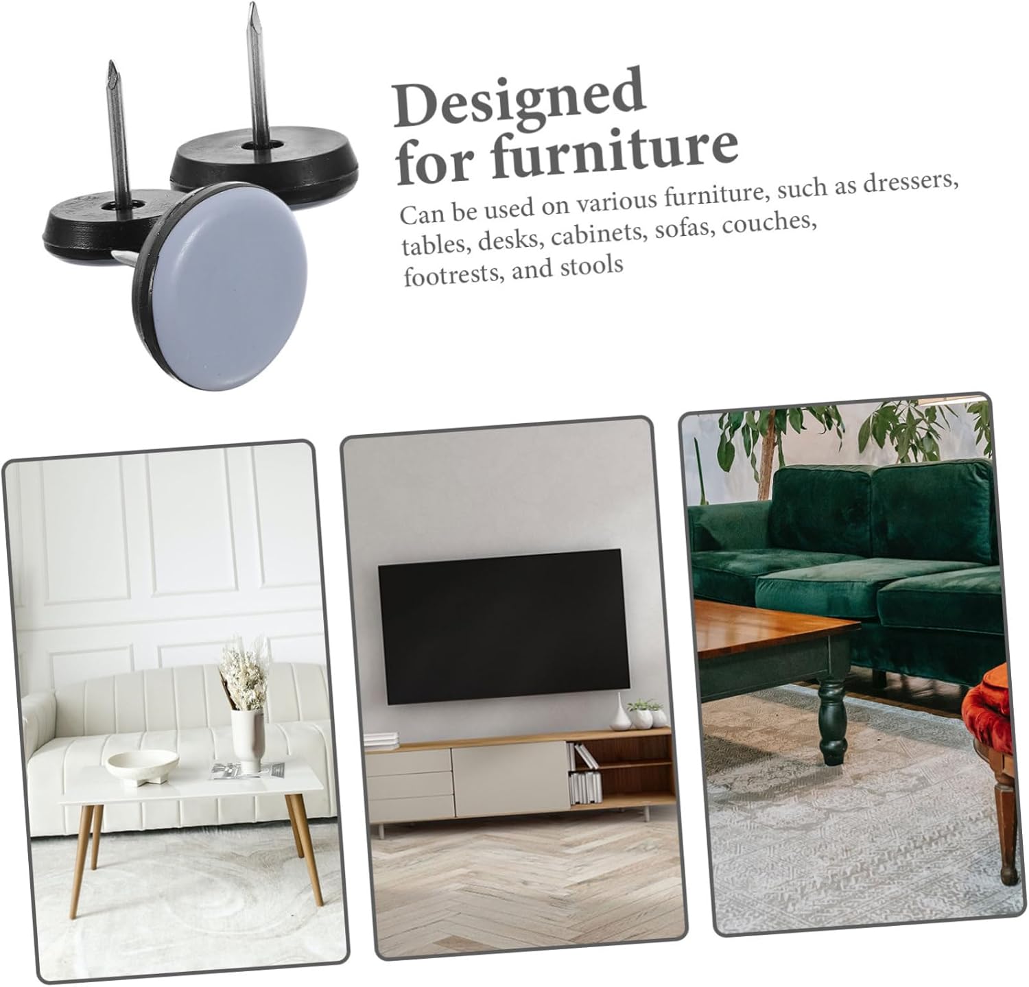 Package List 20 x 19mm Furniture Sliders 20 x 22mm Furniture Sliders 20 x 25mm Furniture Sliders Features -Size:2.50X2.20X2.20cm/0.98X0.86X0.86in Furniture Sliders -Size:2.50X1.90X1.90cm/0.98X0.75X0.75in furniture pads -Color:Black furniture pads for hardwood floors -Material:PTFE, iron chair glides for hardwood floors -Size:2.50X2.50X2.50cm/0.98X0.98X0.98in nail pads for furniture leg -Specification Size: 19mm, 22mm, 25mm furniture glide. -Simply pre-drill a hole and tap the furniture pads into the legs to prevent scratches and annoying noise nail chair nail pad. -Furniture pads with nails are for wooden chair legs, making it easy to move on hardwood floors chair glides for carpeted floors. -Can be used on various wooden furniture, such as dressers, tables, desks, cabinets, sofas, couches, footrests, and stools carpet protectors for furniture legs. -Iron furniture glides with stable PTFE cushion ensure durability and longevity chair leg pad. -These easy-to-install nail-on sliders are ideal for wooden furniture legs, including chairs and tables furniture leg nail pads.Goods Descriptionfurniture sliders for hardwood floors Also can be a present choice for your friends, they will like it.chair leg pad Made of sturdy material for long time and durable use.floor protectors for chairs It has a simple design, but very practical in use, giving you a using experience.table leg nail pads Designed for furniture, this furniture slider can help you move your furniture easily