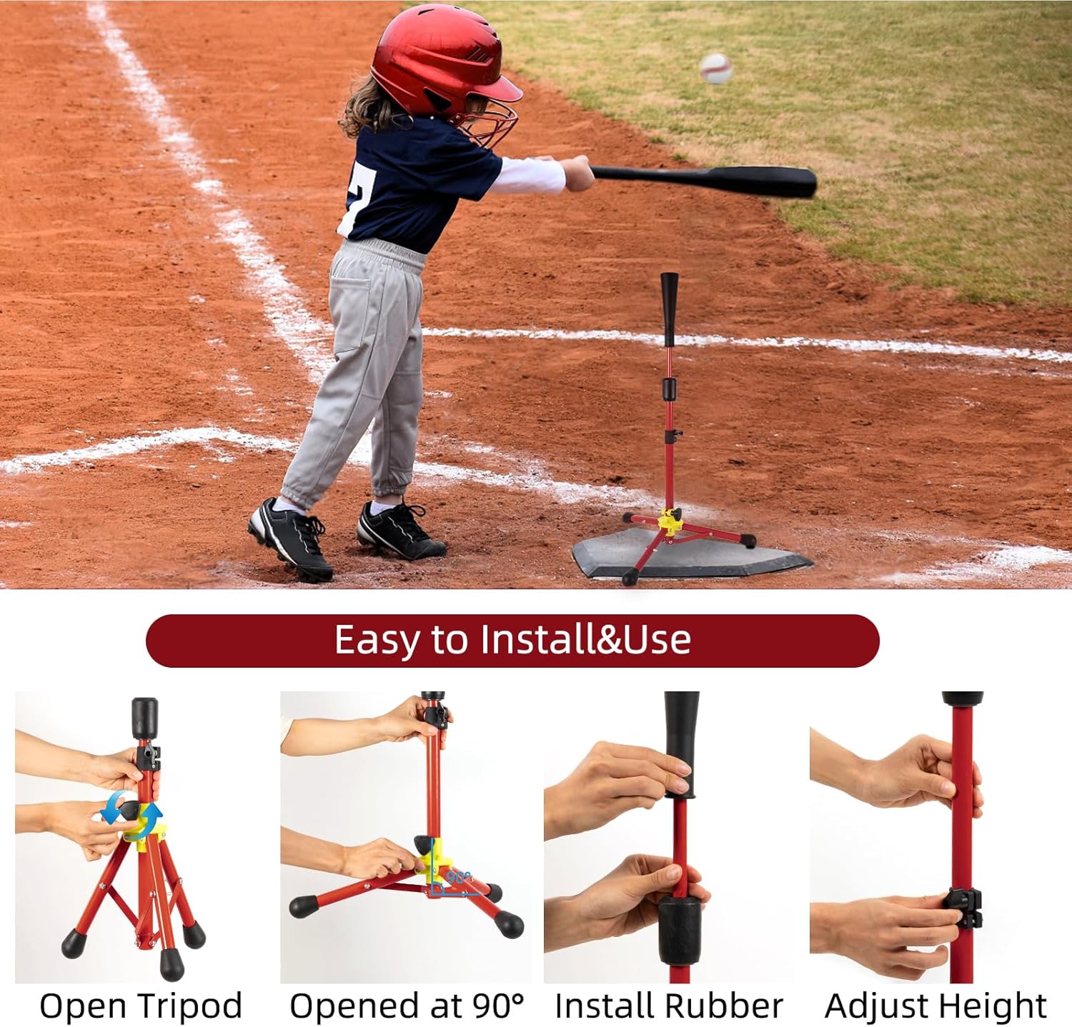 Baseball Softball Backstop Nets With 23.5 to 39.76 Inches Baseball Tee for Kids