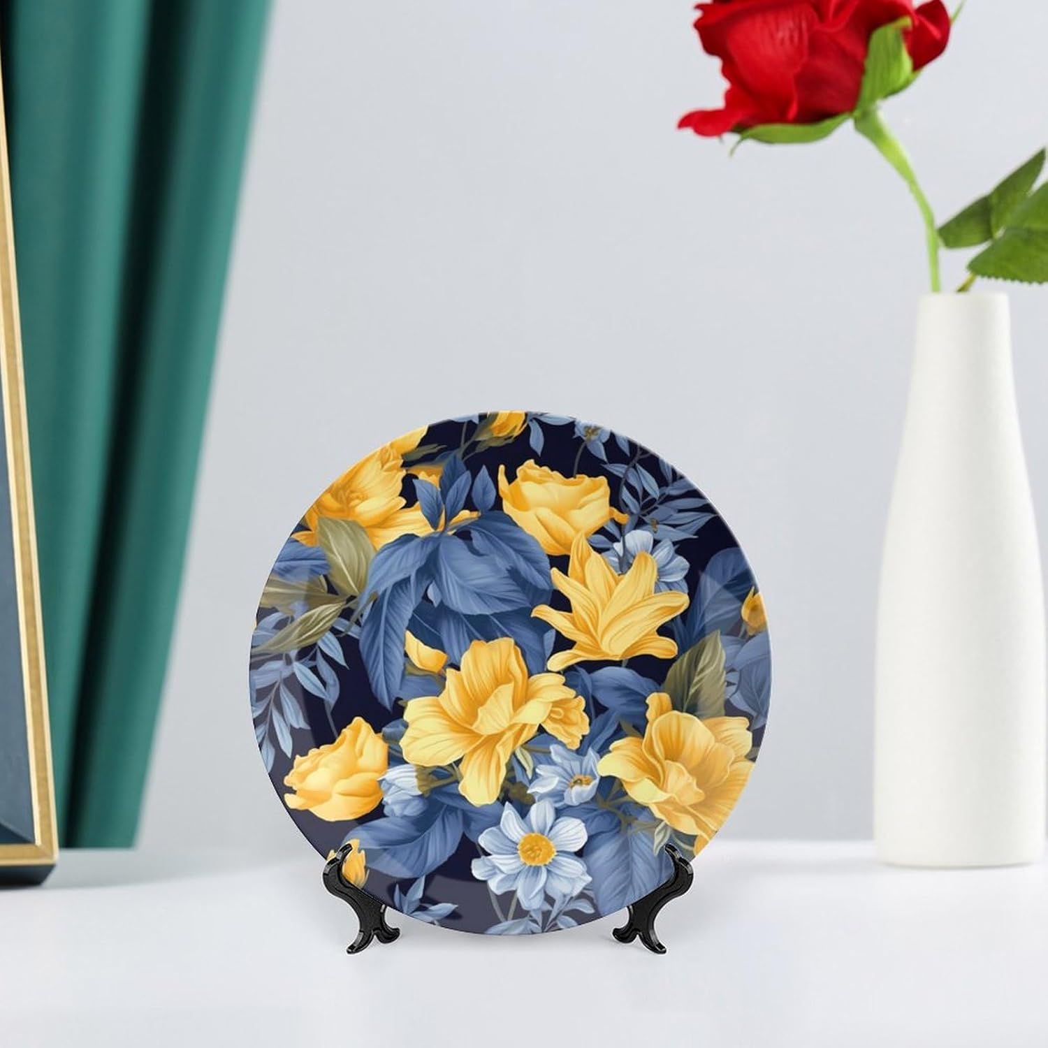Fine Bone China Plates Set China Dishes China Plate Decorative Plates For Wall Hanging Christmas Decorative Plates Ceramic Plate Decorative Plate Stand Display Plates Home Decor Ceramic Wall Decor Wall Art Decor Dinner Plates Bone China Plates Bone China Dinner Plates Personalized Ceramic Plates Ceramic Crafts Materials: Ceramic4 sizes:6inch - Diameter 15.4cm/6.1in, Thickness 1.7cm/0.7in.7inch - Diameter 18cm/7.7in, Thickness 2cm/0.8in.8inch - Diameter 20.7cm/8.7in, Thickness 2cm/0.8in.10inch - Diameter 25.7cm/10.1in, Thickness 2.7cm/1.1in. Include: Decorative plate + base + hook + A piece of selfadhesive. Diversity Of Use: 1. Use the base to place on the table. 2. Use hooks and hang on the wall. Applicable Scenes: Decorate in home living room, hotel, office, hallway, dining room, entrance hall, etc. Product Process: Porcelain is fired in the kiln at over 1300 degrees. The white porcelain is printed with delicate patterns that look serene, elegant and artistic. Ideal for display in your home or office, or as a gift for family and friends.These china plates,bone china dinner plates,bone china plates,china plate,decorative plates for home decor,decorative plates for display kitchen,decorative plates for party,decorative plates for table,display plates home decor,ceramic decorative plates, Featuring a fun print, it's perfect for enhancing the beauty of any space and will become a focal point wherever it's placed.