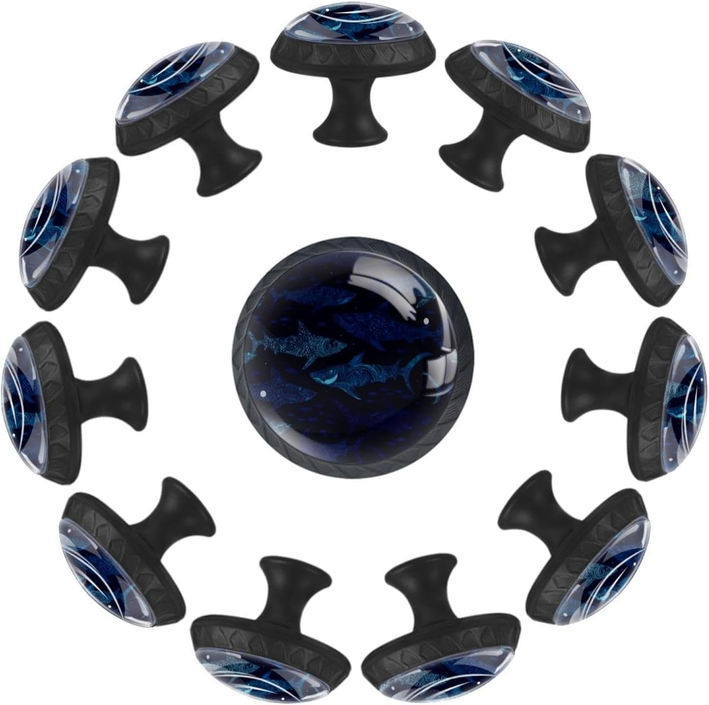 Blue Sharks Pattern Navy (2) Decorative Drawer Knobs Gift Set, Beautiful Pattern Cabinet Pulls for Kitchen Bedroom Bathroom Dresser Wardrobe Decor