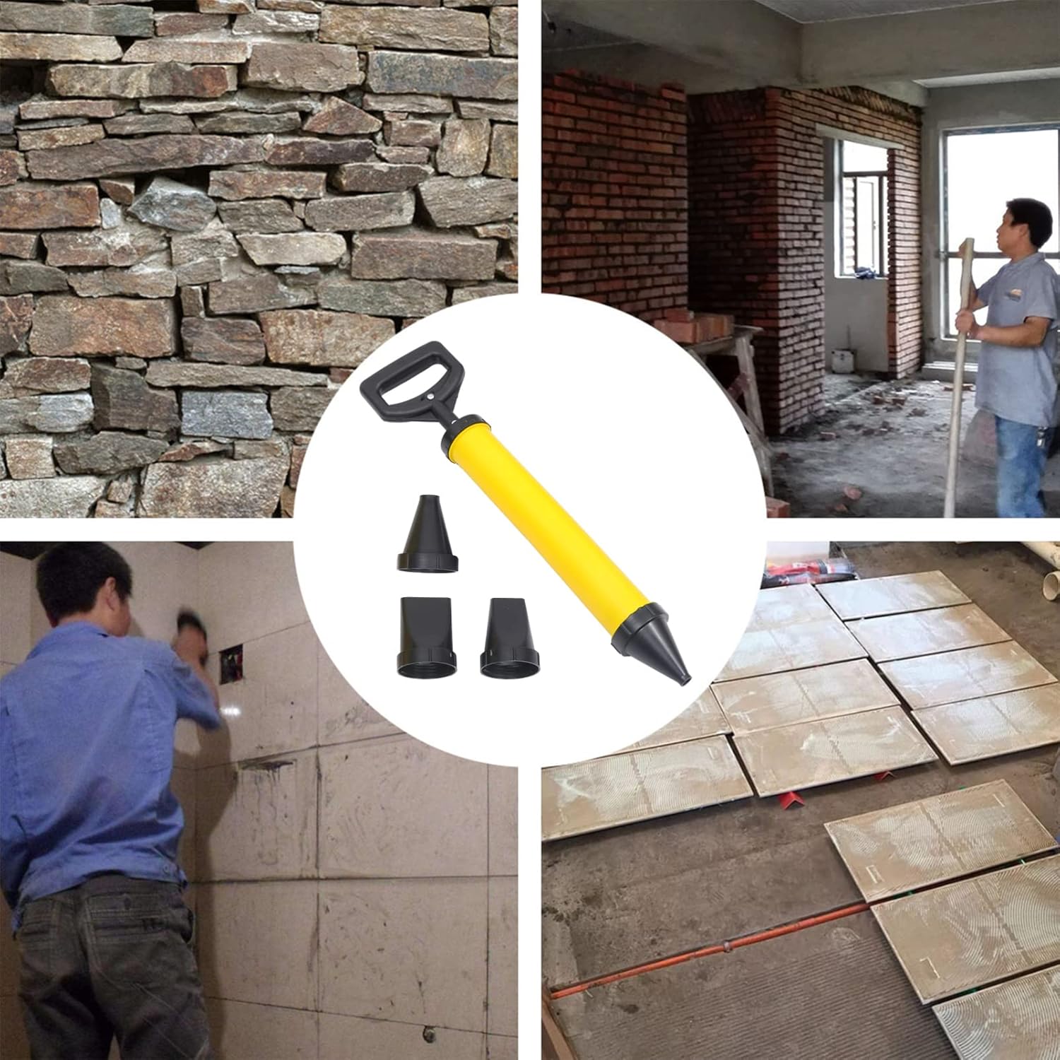 sealing performance, wear resistance. Stainless steel , push and pull smoothly. Detachable parts, easy to operate. handle, push and pull comfortable. Grouting tool with Nozzles. Specifications:- Color: Yellow.- Size: About 54. 00X14. 00X6. 50cm/ 21. 22X5. 50X2. 55inch.- Material: ABS. Note: No retail package. Please allow 0- 1cm error due to manual measurement. pls make sure you do not mind before you bid. Due to the difference between different monitors, the picture may not reflect the actual color of the item. Thank you! Package Includes: 1 x Grouting tool 4 x Nozzles