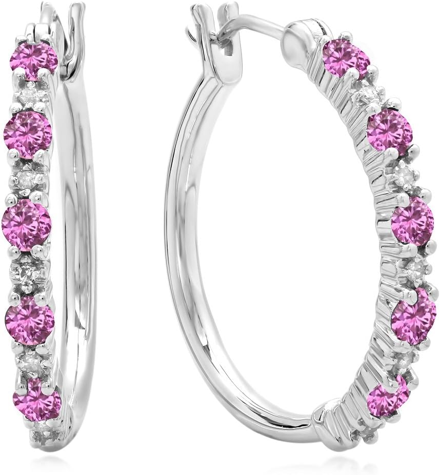 These lovely huggie hoop earrings features 0.52 ct. round cut gemstone and 0.10 ct. round cut white diamonds alternate in prong setting. All white diamonds are natural & non-treated, minimum diamond color is I-J & clarity is I2-I3. All stones are Sparkling. SKU # K2245