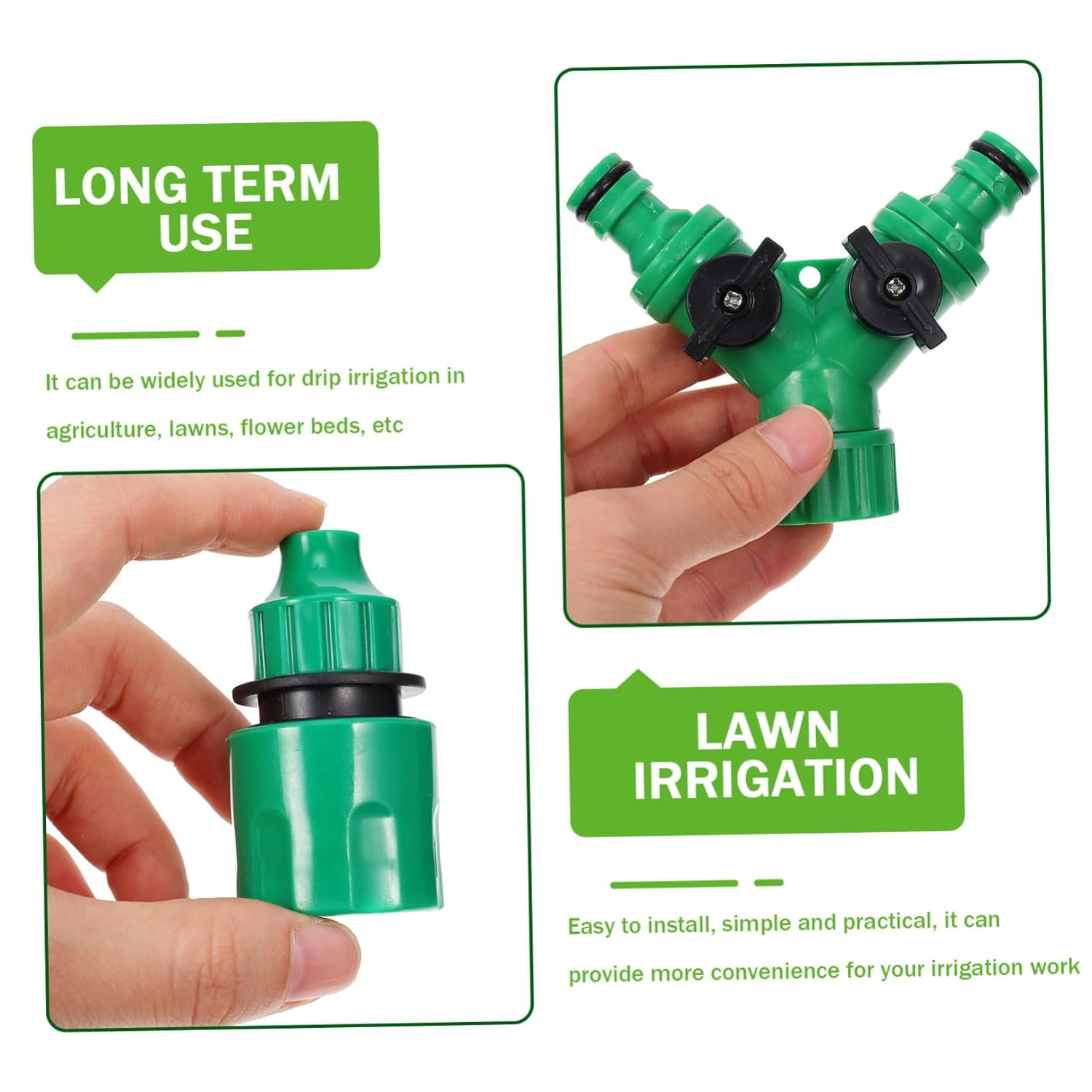 Package List 1 x set of Drip Irrigation Tool Characteristics - Color: Assorted Color Misting Sprinkler. - Size: About 10.50X9.50X3.50cm/4.13X3.73X1.38inch Misting Nozzle. - Material: Plastic Automatic Watering Kit. -Product Info:Micro-drip irrigation set - Automatic watering saves time and effort and helps you solve the problem of unmanned watering Automatic Irrigation System. - It is made with craftsmanship, has excellent durability, and Drip Irrigation System. - It is made of mild and durable plastic material, with excellent texture and durability Micro Drip Watering Kit. - It is widely used in spraying, irrigation, humidification, cooling, watering, greenhouses, etc. It will be your good tool kit choice Micro Garden Irrigation. - It is easy to adjust, efficient and practical, and can meet the water demand of different plants Drip Sprinkler.Goods DescriptionIrrigation Dripper Made of anti-ultraviolet and anti-aging hard plastic material, it is solid and durable, not easy to damage or leak.Micro Drip Irrigation System Our watering system can save water and of time, after installing the watering kit, just rotate faucet, watering all your plants in one time