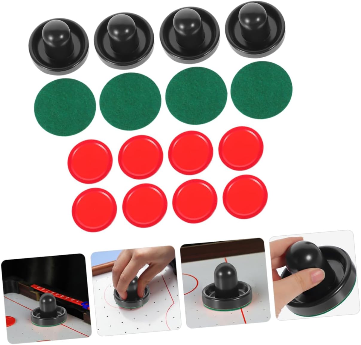 Package Include 2 x hockey pushers 2 x lint 4 x hockey pucks Characteristics -Color:Red set -Size:7.60X7.60X5.20cm/2.99X2.99X2.04in party supplies -Size: puck diameter:51mm ice hockey pushers -Material:ABS, sponge games - Creative design paddles provide a comfortable feel, overall game experience, very creative plastic ice hockey paddles. - This pack of ice Hockey Pucks and sliders are for replacing worn out ice hockey equipment. table - This set is manufactured with stable material to ensure the of the puck sturdy, work for long . ice hockey paddles - A must for leisure sports in any game room These replacements surely make competitive matches red. - This replacement parts set is very quick and easy solution to lost pucks that keep you from playing ice hockey game pusher.Goods Descriptionice hockey game pusher The felt pads included in this set are made of ABS and sponge material, ensuring that your table surface remains undamaged during game playing.plastic hockey pucks With this set, you can enjoy hours of fun without worrying about any damage to your table.ice hockey paddle The soft and protective fabric provides a smooth surface for the puck to glide on, enhancing the overall gaming experience