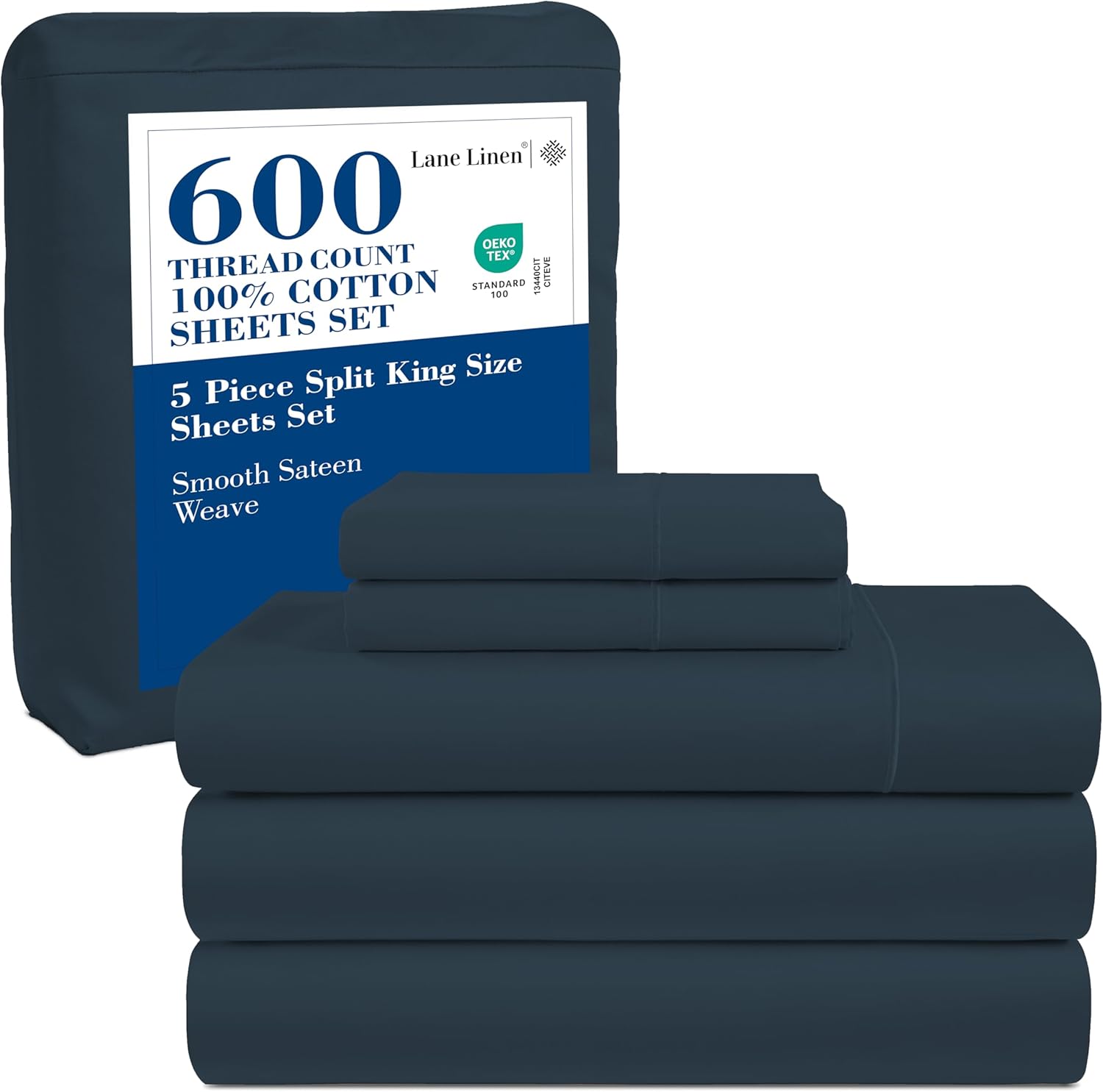 Introducing the Lane Linen 600 Thread count 100% long staple cotton sheet set, the perfect combination of comfort and luxury for a great night's sleep. These 100% Cotton Sheets are incredibly soft, durable, and breathable. Our premium 600 thread count Sateen weave sheets ensure a silky smooth finish that feels great against your skin, while also providing long-lasting durability that withstands daily wear and tear. The Lane Linen sheet set is machine washable and easy to care for, ensuring that they stay looking and feeling great wash after wash. Plus, they come in a range of vibrant colors to match any decor style. Whether you're looking for a luxurious upgrade to your bedding or just want to get a great night's sleep, the Lane Linen 600 Thread count collection is the perfect choice. Order now and experience the ultimate in comfort and style.