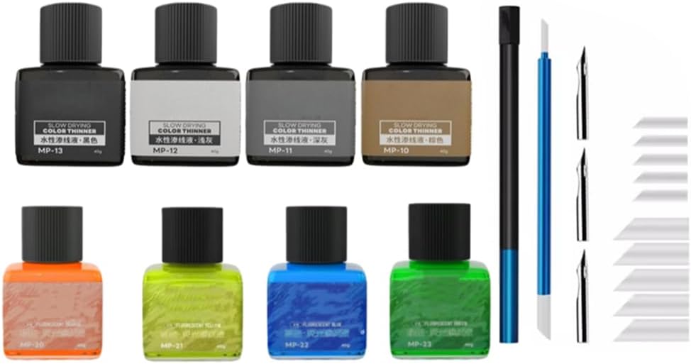 Product Description Unlock Battlefield Realism with Pro-Grade Weathering Imagine transforming your pristine Sherman tank into a Normandy veteran – mud-caked treads, oil-streaked hull, and gritty wear telling a war story. Our water-based panel liner is your tactical ally for museum-level dioramas. Why Lots Modelers Choose Us: ✅ Capillary Formula – Self-flowing liquid penetrates microscopic grooves on aircraft rivets & mecha joints. ✅ Beginner-Friendly – Mistake? Simply wipe with included swab. No acetone damage like oil-based washes! ✅ Certified Safety – AP non-toxic certification. Kid-friendly for hobby families. Pro Tip: Apply over gloss varnish for razor-sharp panel lines. Use swabs dampened with Stretly Cleaner (sold separately) for rust streaking effects.