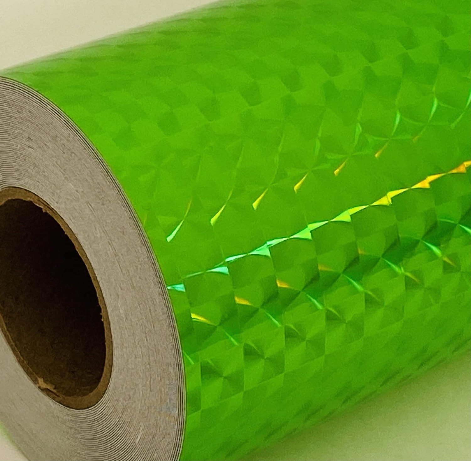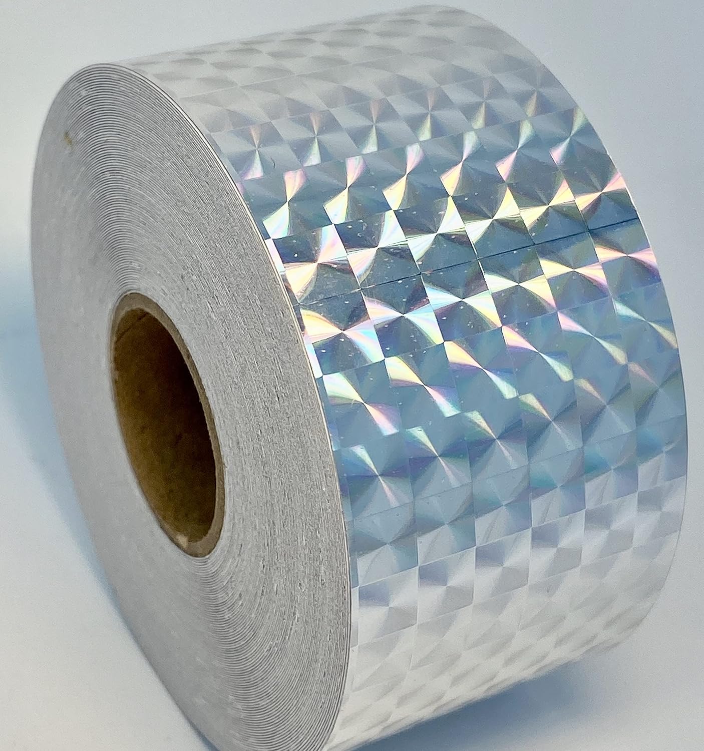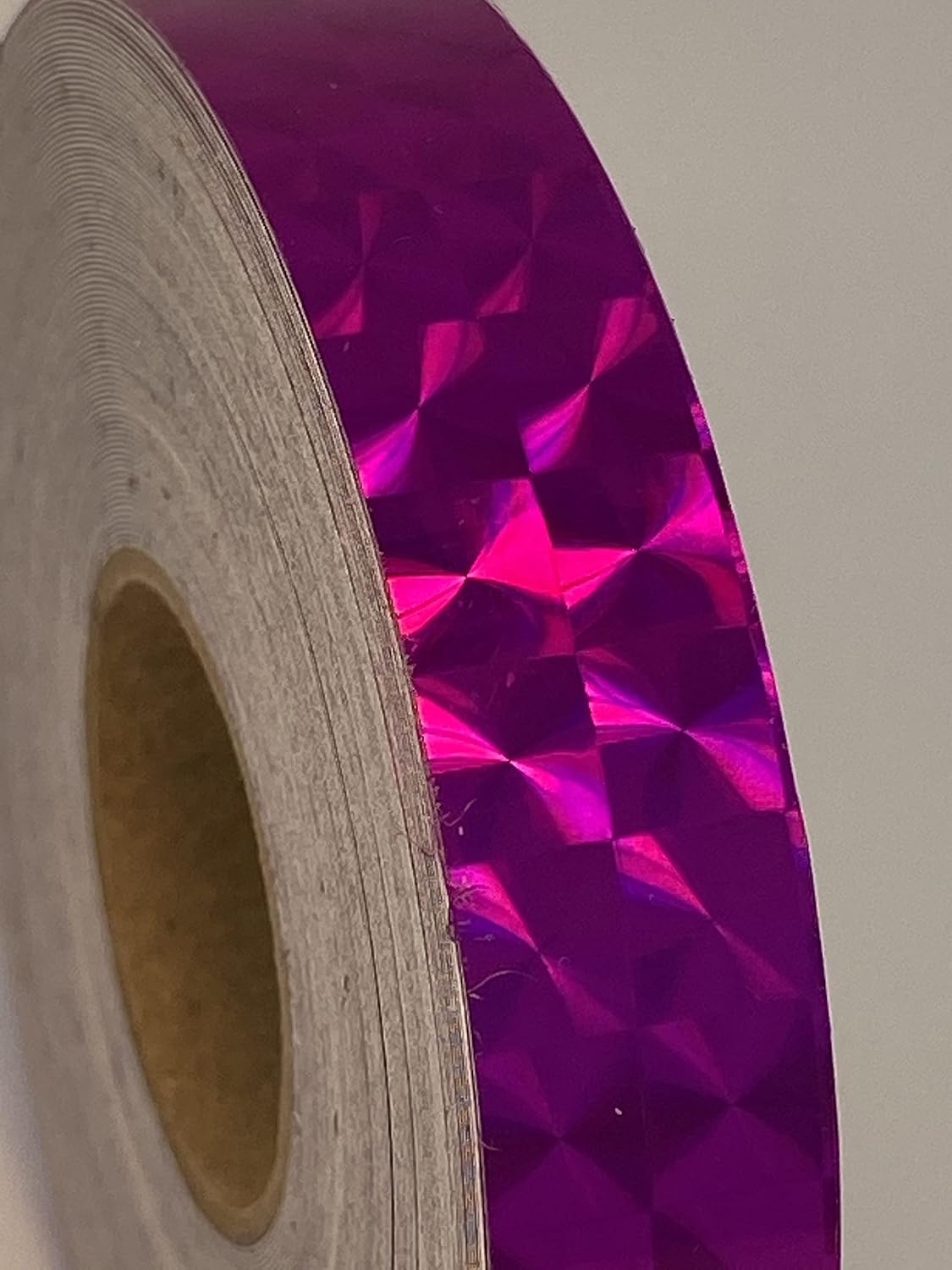 This holographic diffraction tape appears to change color when moved, or when the viewing angle changes. This tape has sticky adhesive on the back side. A paper liner is peeled off the back to expose the adhesive surface. Used for automotive, bike and truck graphics and stripes, decorating Hula Hoops, poles, colorguard, crafts,fishing lures, auto and truck stripes, racing stripes.