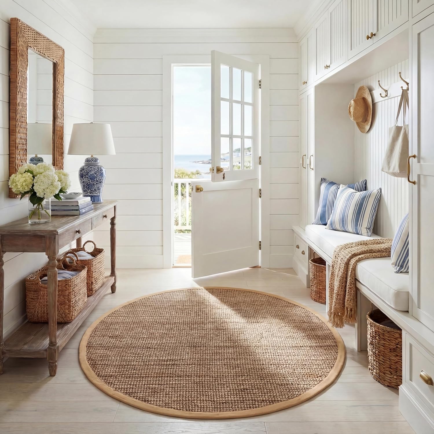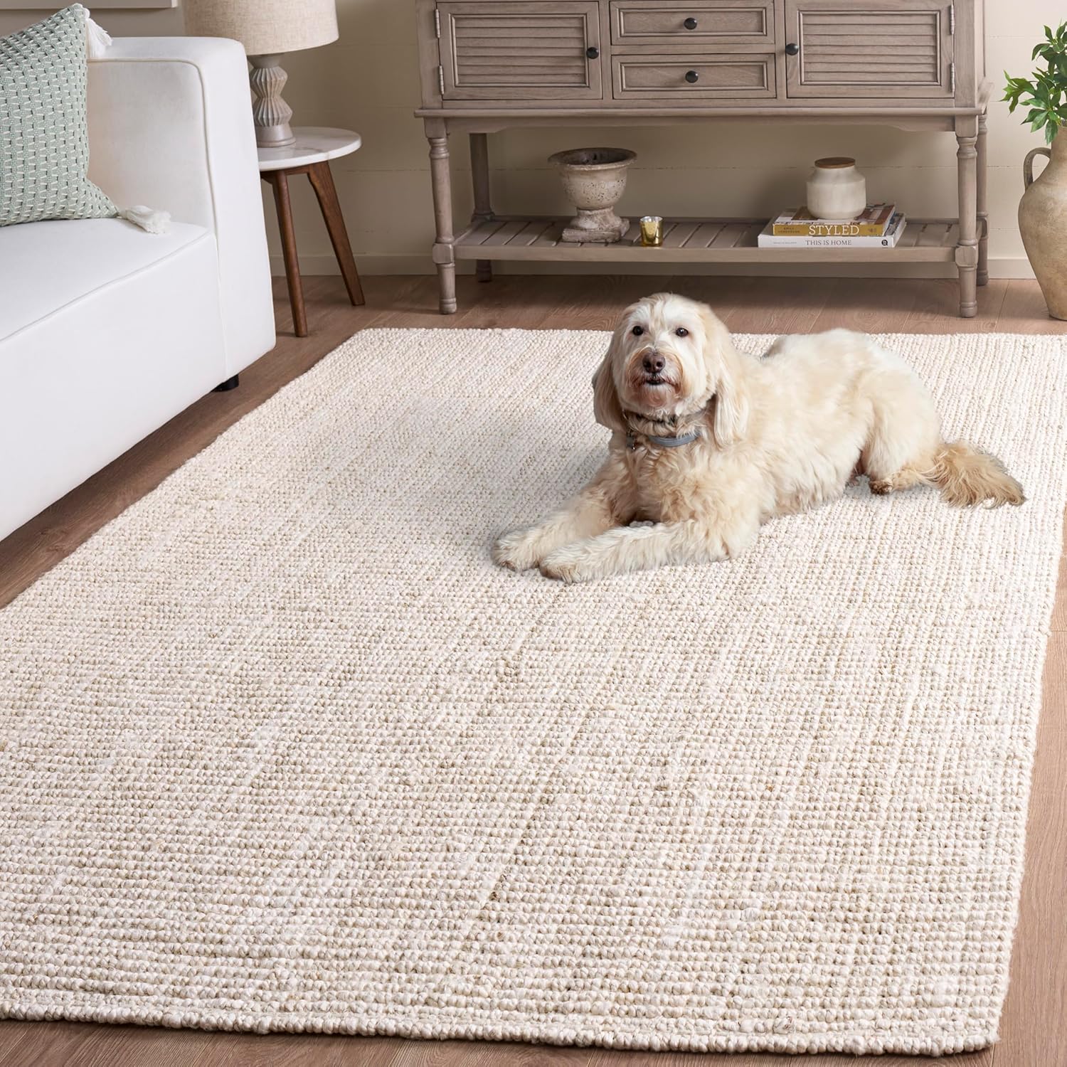 Bring rich texture and natural style to your home with this handwoven rug from SAFAVIEH’s Natural Fiber Collection. Expertly crafted from a durable blend of 60% jute and 40% coir coconut fiber, the chunky, thick weave adds depth and dimension for an earthy, organic look that complements décor styles ranging from coastal and farmhouse to modern boho. Designed without a backing, this rug offers a flexible, authentic handmade feel and is available in multiple sizes and colorways to suit any room. Each rug is uniquely crafted, with slight variations in size and color that highlight its artisanal character. Sprouting and shedding are natural characteristics of plant fibers and part of the rug’s inherent charm, while any creases from shipping will flatten and settle over time. For best results, avoid placing in direct sunlight to help prevent fading.