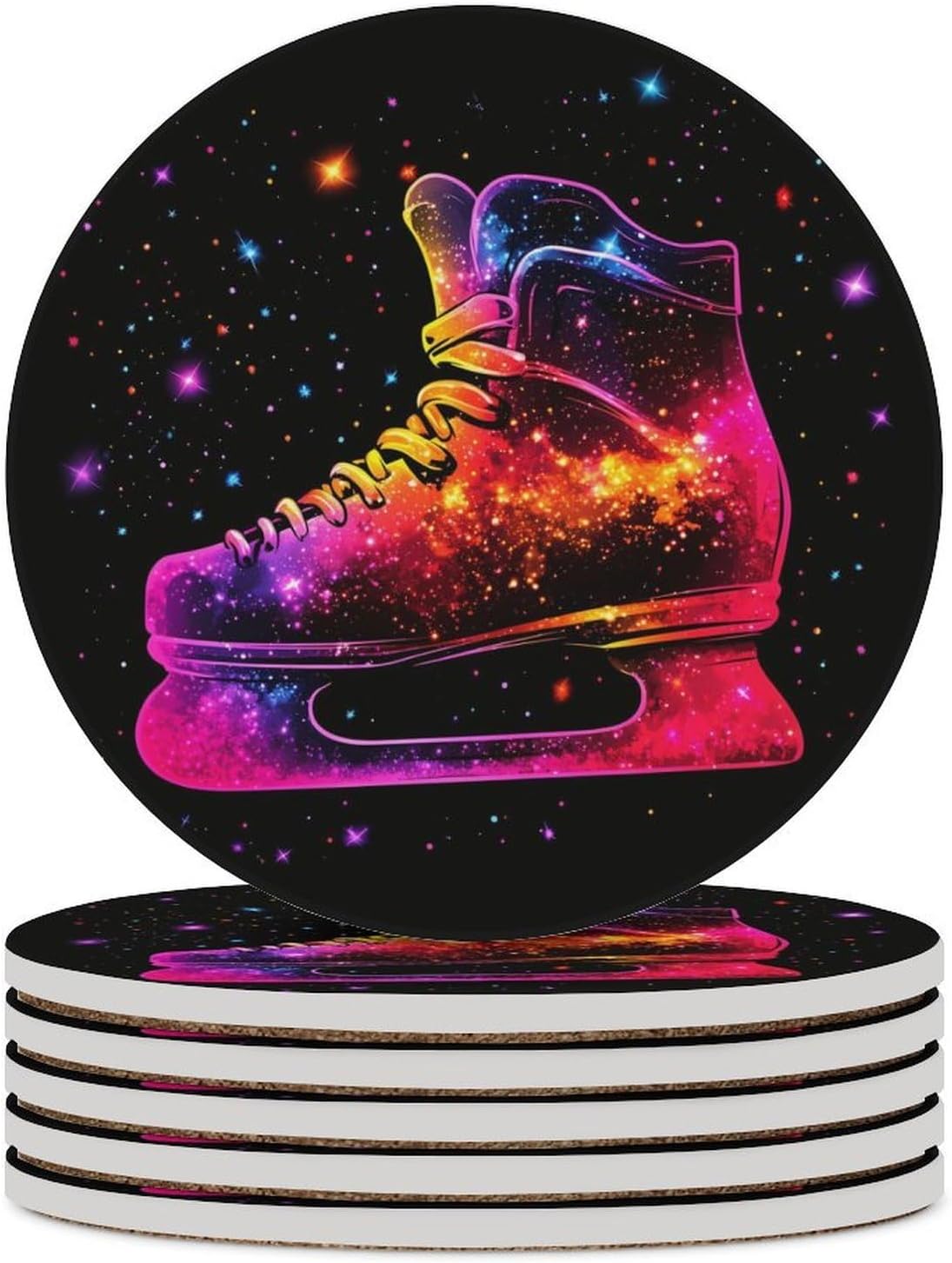 Skating Space Boot Round Ceramic Coasters for Drinks Absorbent Cup Holder Tabletop Protector with Cork Base