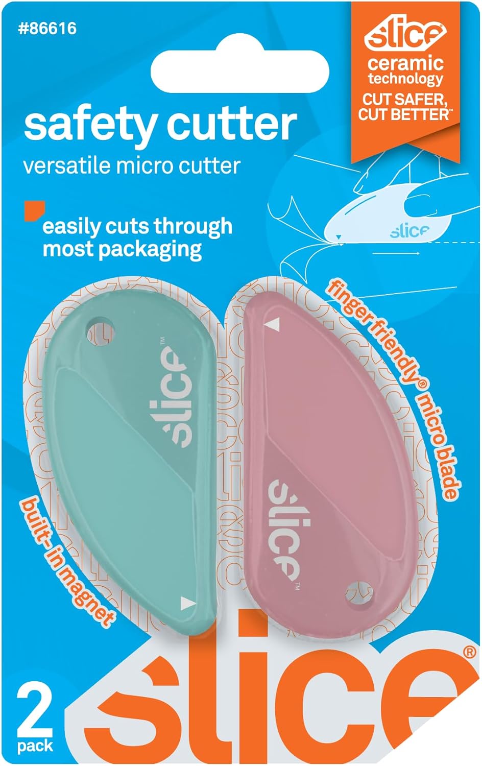 The Slice Safety Cutter is one of the first tools Slice designed and remains one of our most popular. Initially conceived for household use—it excels at opening packing tape and retail packaging—the mouse-shaped Safety Cutter has found a home in industrial settings worldwide. Its micro-ceramic blade cuts thin materials effectively while safeguarding fingers with our signature finger-friendly edge. Use the Safety Cutter’s lanyard hole and built-in magnet to keep this unique tool close at hand.