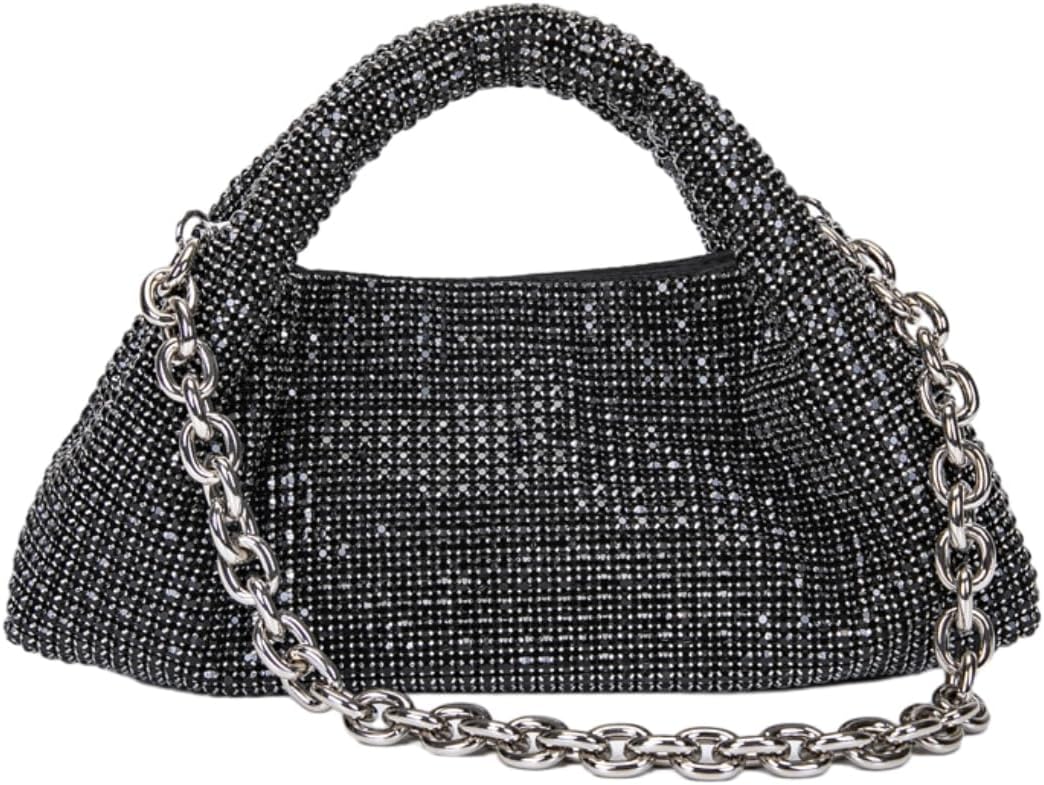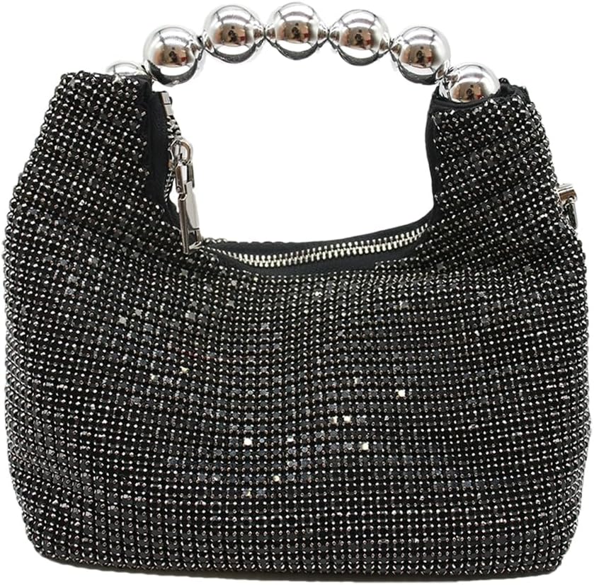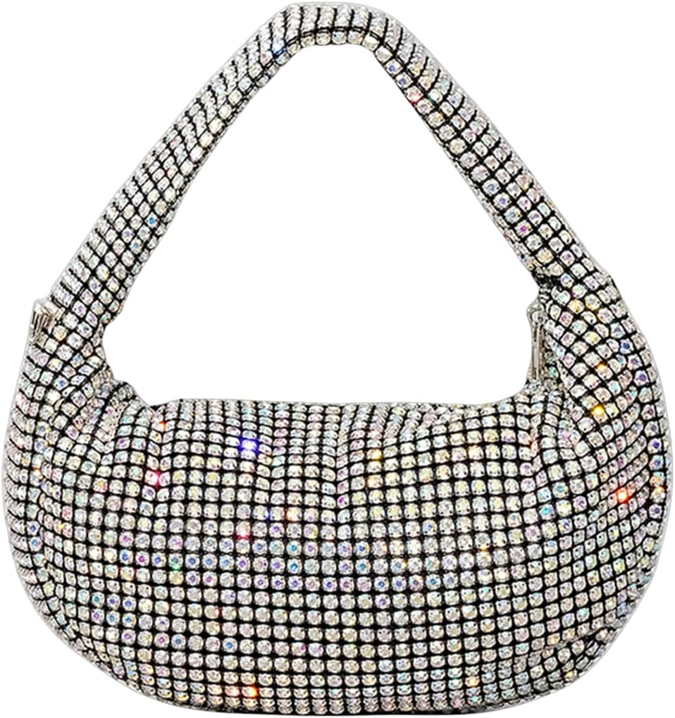 • Evening Purse Dimensions: 10.2"L x 4.7"W x 6.3"H, The rhinestone hobo dumpling bag can hold your daily essentials like cell phone, lipstick, make ups, mini earphones, small wallet, sunglasses, keys etc
