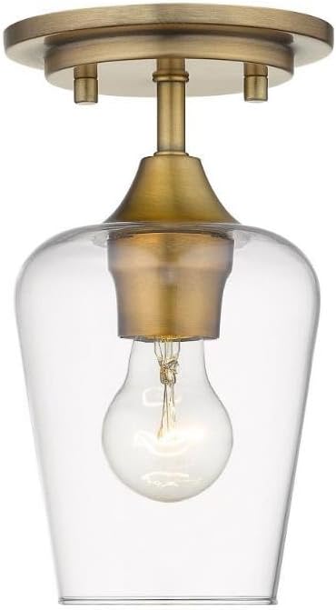 Upscale sophistication with a Mid Century Modern vibe tells the story of this elegant one-light wall flush mount ceiling light. A blend of delightful materials offers a stunning large glass shade with warm Olde Brass finish metal, delivering a delightful aesthetic and targeted lighting in a nook or reading space.